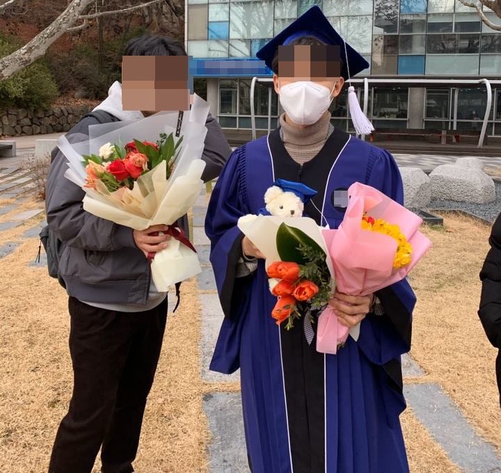 강씨의 졸업을 축하해주러 온 김 모씨(27)는 "코로나 때문에 걱정이 되긴 했지만 동기의 졸업을 축하해 주기 위해 마스크를 열심히 쓰고 왔다"며 함께 기념 촬영을 했다.