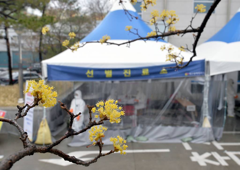 ![[대구=뉴시스] 이무열 기자 = 봄비가 내린 10일 대구 서구보건소에 마련된 신종 코로나바이러스 감염증(코로나19) 선별진료소 앞에 노란 산수유 꽃이 활짝 폈다. 2020.03.10. lmy@newsis.com](https://thumb.mt.co.kr/cdn-cgi/image/f=avif/21/2020/03/2020031109295793125_1.jpg)