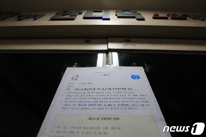 (서울=뉴스1) 구윤성 기자 = 19일 오후 집합제한명령서가 붙은 서울 노원구 안디옥교회가 폐쇄돼 있다. 안디옥교회 집단감염은 성북구 사랑제일교회 예배에 참석했던 교인으로부터 확산돼 18명이 확진판정을 받았다. 2020.8.19/뉴스1 <저작권자 © 뉴스1코리아, 무단전재 및 재배포 금지> 독자들의 PICK! 명문대 출신 걸그룹 멤버, 무속인 된 사연…"가족 죽는 꿈 꾸더니" 시부모엔 용돈 30만원, 친정은 불가…"네 월급으로 줘" 남편과 갈등 43세 여가수 임신에 "썩은 양수" 충격 댓글...18년 전 발언 '부메랑' '아들 불륜' 조갑경 예능 출연에 전며느리 분노..."난 고통 속에 사는데"
