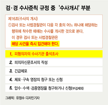개정안에서는 피혐의자에 대해 △수사기관 출석조사 △피의자신문조서의 작성 △긴급체포 △체포·구속영장의 청구 또는 신청 △압수·수색·검증영장(부검 제외) 청구 또는 신청 등을 하면 바로 입건하도록 규정했다.