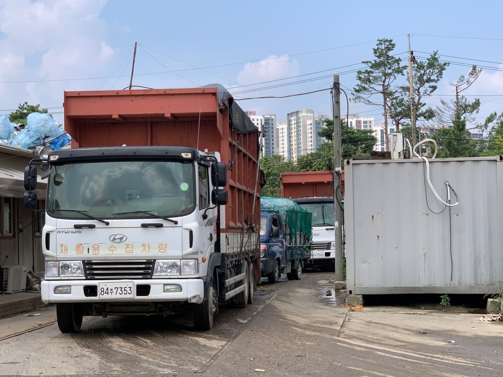중간 집하장으로 이동하니 늘어난 폐기물양은 더 심각하게 다가왔다. 폐기물을 실은 차량들이 물건을 내려 놓지 못하고 줄서서 한시간씩 넘게 대기하고 있었다. 앞선 차들의 폐기물 양이 너무 많아 이를 내리는 데 시간이 너무 지체된 탓이었다.