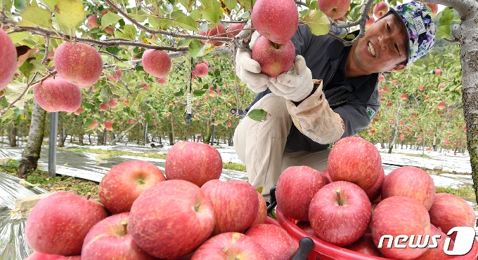 (서울=뉴스1) = 12일 경남 거창군 북상면의 송계농원에서 귀농 3년째인 최병진 씨가 부사 사과를 수확하고 있다. 가을철 수확하는 부사는 맛이 좋고 저장성이 우수해 이듬해 4월까지 저장 할 수 있다. (거창군 제공) 2020.10.12/뉴스1 <저작권자 © 뉴스1코리아, 무단전재 및 재배포 금지> 독자들의 PICK! '아들 불륜' 조갑경 예능 출연에 전며느리 분노..."난 고통 속에 사는데" 의사 남편 외도 봐줬더니 또…"상간녀 위자료도 대신 내" '은퇴' 조진웅, 말레이시아 목격담…4개월 만에 알려진 근황 "총각인 줄 알고 결혼" 빚더미 남편, 전처·자식 숨겼다...아내 충격