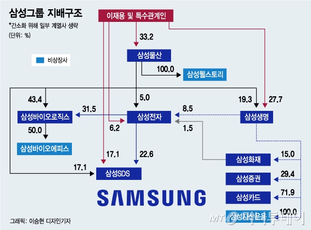 당시 이재용 삼성전자 부회장은 삼성에버랜드을 정점으로 삼성생명과 삼성전자, 삼성카드로 이어지는 출자구조를 통해 삼성그룹을 지배했다. 그 이전까지만 해도 공정위는 여전히 고 이건희 회장이 미래전략실을 통해 삼성그룹을 지배했다고 판단, 동일인 지위를 유지했다.