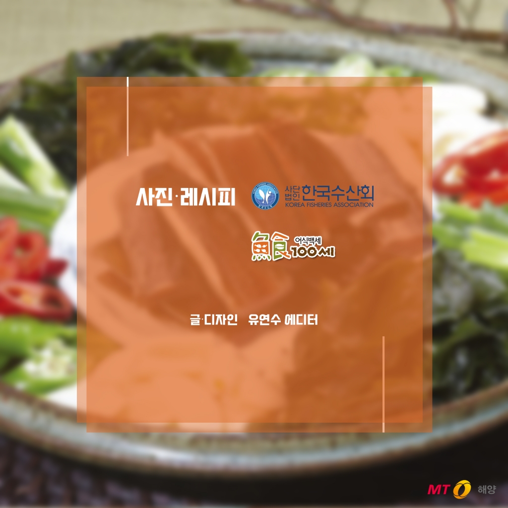 [편집자주] [바다정보다잇다]의 수산물 레시피는 재미있고 유익한 수산물 정보를 제공하고 수요자와 공급자를 잇기(연결하기) 위한 기획 콘텐츠입니다. 수산물 소비촉진을 위해 MT해양과 해양수산부 어식백세와 함께 올바른 수산물 정보와 맛있는 우리 수산물 요리를 전합니다.