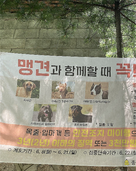 행복이(3살, 스피츠)가 공원서 산책할 때였다. 70대쯤 되어보이는 어르신 한 명이 다가와 다짜고짜 반말로 '입마개'를 왜 안 하냐며 윽박질렀다. 보호자인 이모씨(28, 가명)가 "어르신, 얘는 법적으로 입마개 안 해도 되는 개에요. 제가 산책할 때 잘 잡고 있고요"라고 설명했다. 그래도 소용 없었다.
