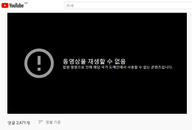 유튜브는 "해당콘텐츠에 대해 '법원 명령'이 접수됐다"며 "콘텐츠를 대한민국 유튜브 사이트 내에서는 시청할 수 없도록 차단했다"고 22일 채널운영자에게 이메일을 통해 고지했다.