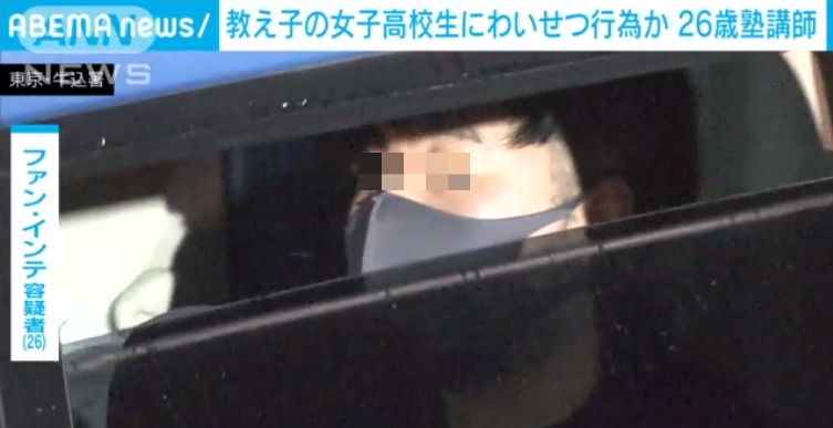 일본 도쿄의 한 학원에서 한국인 20대 남성이 여고생을 성추행한 혐의로 체포된 가운데 얼굴과 신상이 공개됐다.