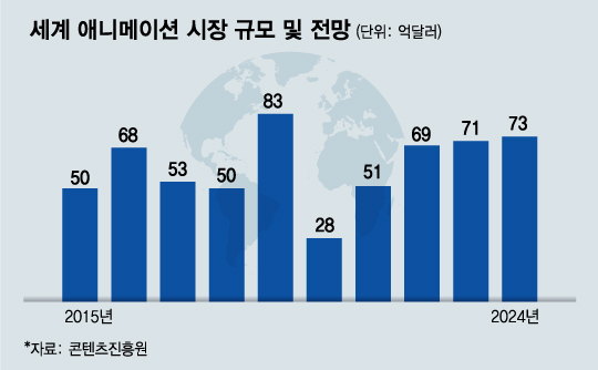 핑크퐁의 성공으로 국산 애니메이션 캐릭터 시장도 탄력을 받고 있다. 한국콘텐츠진흥원에 따르면 2019년 기준 전세계 애니메이션 시장은 83억달러(약 9조7375억원)다. 코로나19(COVID-19) 여파로 지난해 애니메이션 시장은 28억달러(3조2849억원) 수준으로 줄었다. 올해부터는 시장이 다소 살아날 전망이다. 다시 기회가 열리고 있는 것이다.