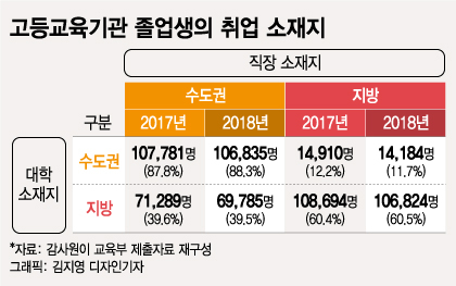 감사원에 따르면 지난해 기준 50.1%인 수도권 인구비율은 2067년 53.2%로 늘어난다. 청년들이 수도권으로 몰려드는 이유는 교육과 일자리로 판단했다. 지난해 지방 소재 고등학생의 수도권 대학 진학률은 14.4%다. 2018년 기준 지방대 졸업생의 수도권 직장 취업률은 39.5%다.