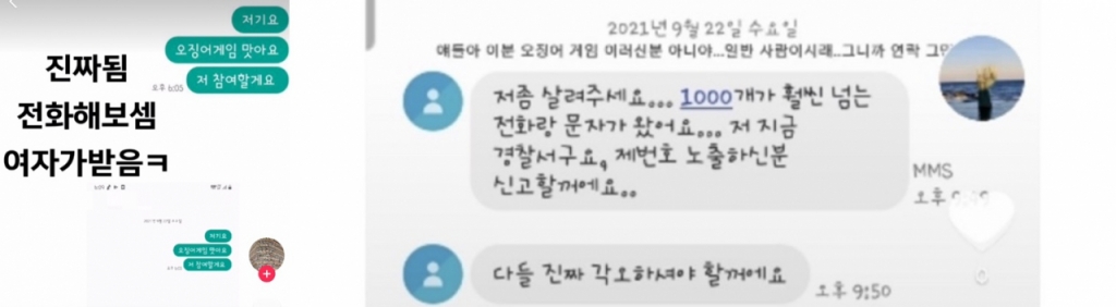 전화를 해서 "오징어게임에 참여하겠다"고 이야기하거나 욕을 하고 그냥 전화를 끊는 등 하루에 수천통의 연락이 와서 일상 생활이 불가능할 정도라고 하소연한다.