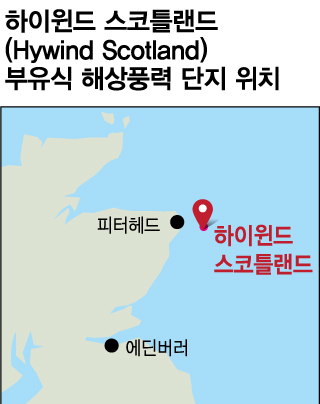 영국이 자랑하는 세계 최초의 부유식 해상풍력 단지 '하이윈드 스코틀랜드'는 2017년 10월 영국 스코틀랜드의 피터헤드 항구에서 25㎞ 떨어진 해상에서 전력을 생산하기 시작했다. 30㎿(메가와트)급으로 3만6000가구가 한 달 동안 쓸 수 있는 전력이다.