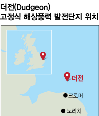 더전은 잉글랜드 노리치시 북쪽의 해변가 마을 크로머에서도 32㎞ 떨어진 곳에 있다. 총 402㎿(메가와트)규모로 6㎿ 풍력 터빈 발전기 67개가 설치됐다.