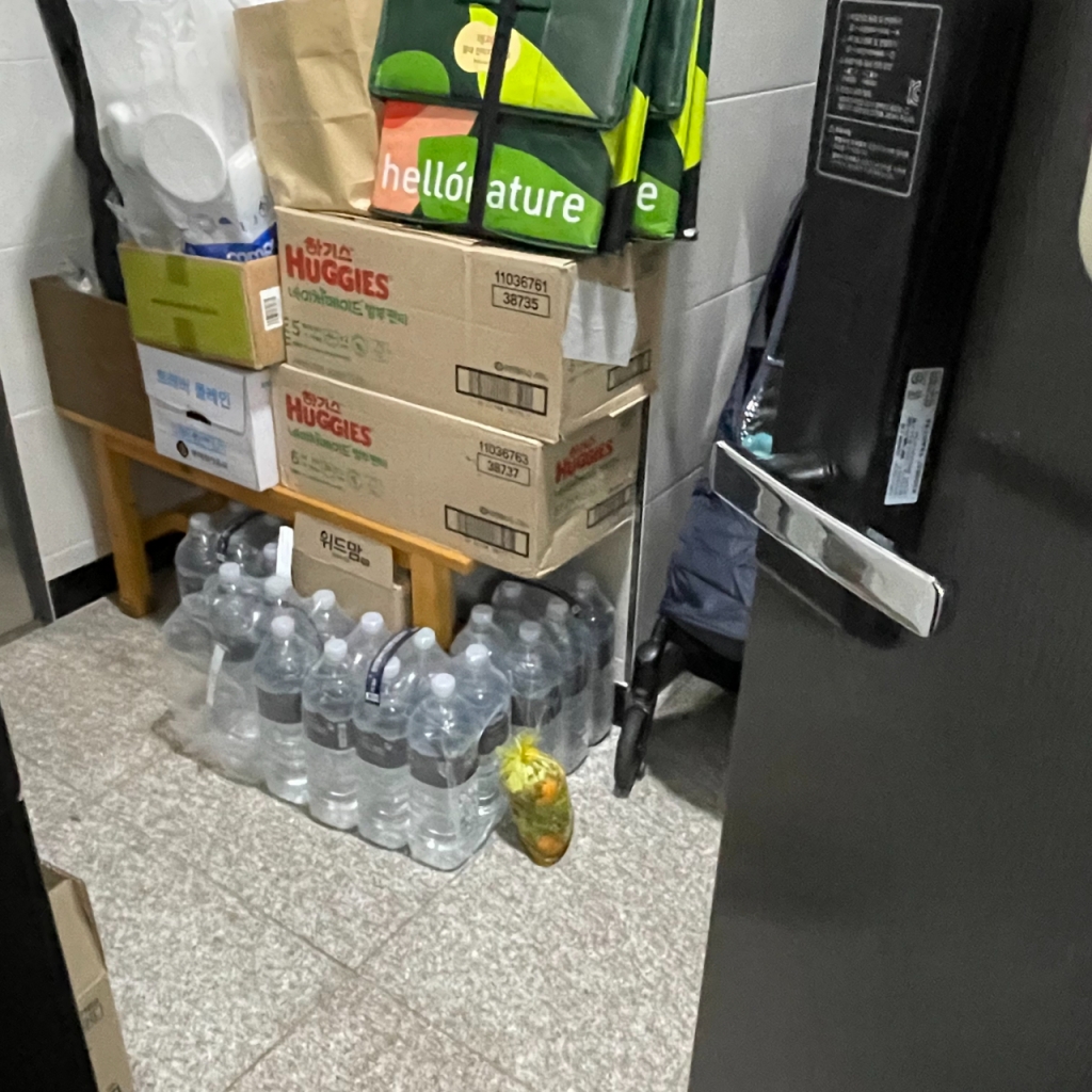 그는 "아기 물티슈 몇 박스, 생수병 몇 박스, 아기 기저귀 몇 박스를 두고 생수병도 빌라 복도에 두고 하나씩 꺼내먹는 것 같다"며 "심지어 선반 쪽에는 양파도 있다. 빌라 복도 구조상 저렇게 쌓아 놓으면 저희 집도 피해를 입을 수 밖에 없다"고 했다.