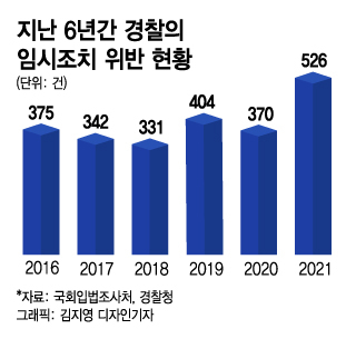 문제는 임시조치 위반 사례도 늘었다는 점이다. 지난해 임시조치 1~3호를 위반한 건수는 526건이으로 2020년(370건)의 약 1.5배 수준이다. 지난해 임시조치 신청 건수(6697건)와 비교하면 7.8%가 조치를 위반했다.