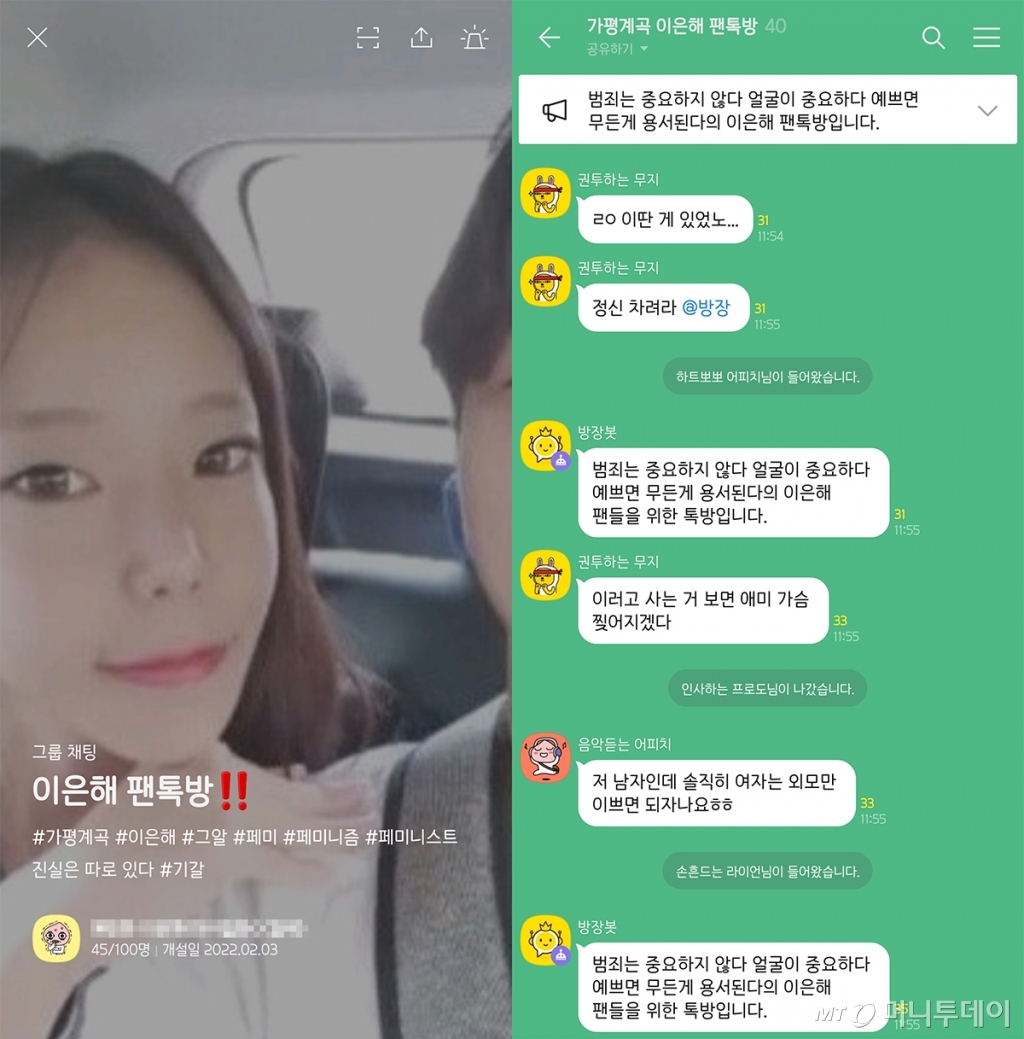 이들 대화방에는 적게는 10명에서 많게는 50여 명이 참여한 상태다. 이 중 한 대화방에 들어가면 "범죄는 중요하지 않다. 얼굴이 중요하다. 예쁘면 모든 게 용서된다의 이은해 팬들을 위한 톡방입니다"라는 안내가 나온다. 또 다른 단톡방에서는 "죄를 미워하되 사람을 미워하지마라"는 공지를 내걸기도 한다.