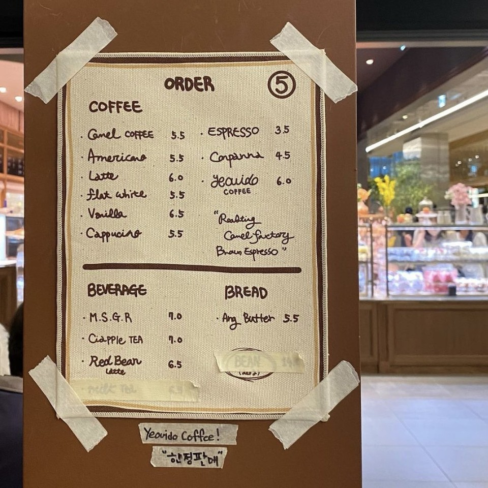 14일 각종 온라인 커뮤니티에 서울 한 유명 카페의 메뉴판 사진이 공유되고 있다. 사진에서 미숫가루는 'M.S.G.R'로, '앙버터'는 'Ang Butter'로, '여의도 커피'는 'Yeouido coffe'로 표기돼 있다.