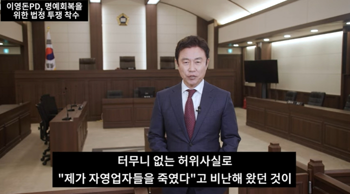 이 PD는 또 지난 대선 경선 과정에서 일부 정치인이 자신을 향해 '가짜뉴스의 대명사', '자영업자 킬러' 등으로 비판한 것을 언급하며 "무슨 근거로 막강한 힘을 가진 분들이 저의 명예를 짓밟는 것이냐"며 분노했다.