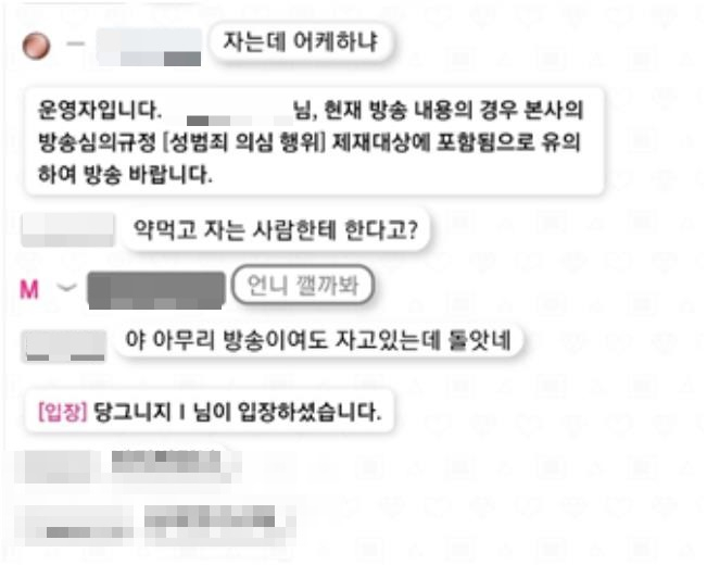 B씨는 방송 중 수면제를 먹고 잠에 든 것으로 알려졌다. 머니투데이가 입수한 방송 화면을 보면 A씨는 B씨가 잠들자 신체를 접촉하는 등 성추행했다. 경찰은 시청자들의 신고를 받고 출동해 A씨를 긴급체포했다.
