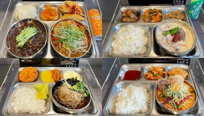 공개된 사진 속 급식은 돼지국밥, 짜장면, 짬뽕, 스테이크, 메밀소바, 비빔국수, 도토리묵냉국 등으로 꽉 채워져 있는 화려한 식단을 자랑한다. 모든 메뉴가 식판에 꽉 눌러 담은 듯이 가득찼다.