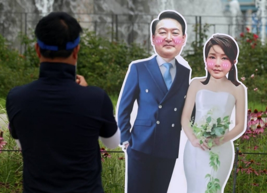 앞서 이 등신대는 지난달 중순쯤 보수단체와 윤 대통령 팬클럽이 설치한 것으로 알려졌다. 이후 청와대를 방문한 윤 대통령 지지자들의 기념 촬영을 하며 유명해졌다. 하지만 웨딩등신대는 화제를 모은 지 하루 만에 사라졌다.