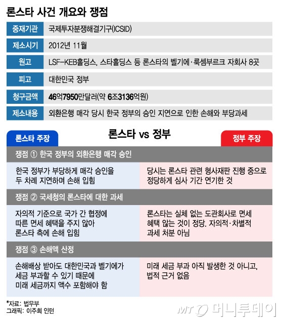 이번 사건에서 최대 쟁점은 론스타의 외환은행 매각이 한차례 무산되고 뒤늦게 이뤄지는 과정에서 한국 정부의 책임이 있는지였다. 론스타는 2003년 외환은행을 1조3834억원에 사들인 뒤 2008년 HSBC에 팔려다가 글로벌 금융위기가 겹쳐 계약이 불발되자 2012년 하나금융지주에 3조9157억원에 매각했다.