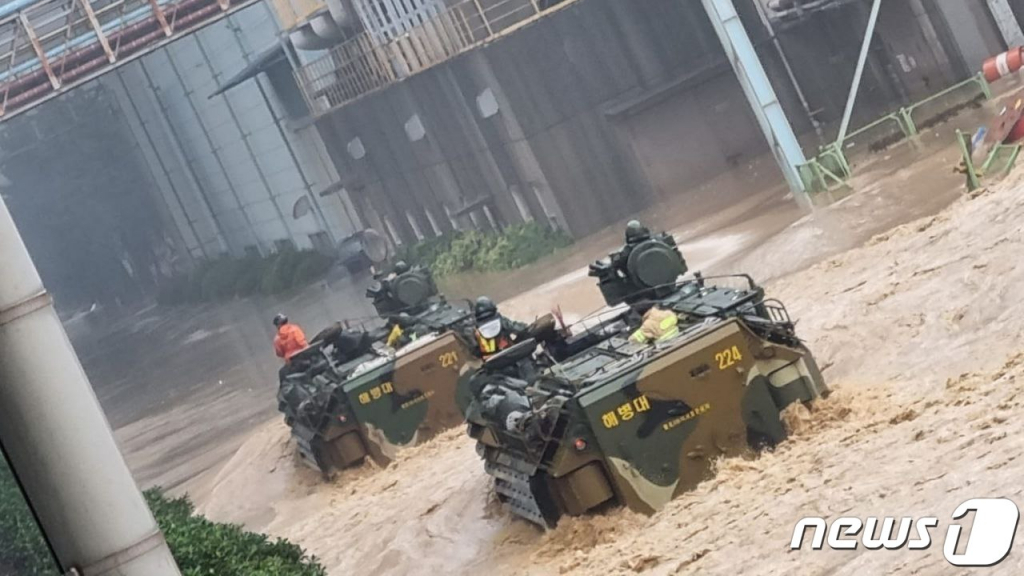 태풍 힌남노의 영향으로 물이 허리까지 차오른 경북 포항의 도로. 고립된 주민이 해병대의 장갑차에 올라타 구조됩니다. 이 모습이 6일 온라인에서 크게 화제가 됐습니다.