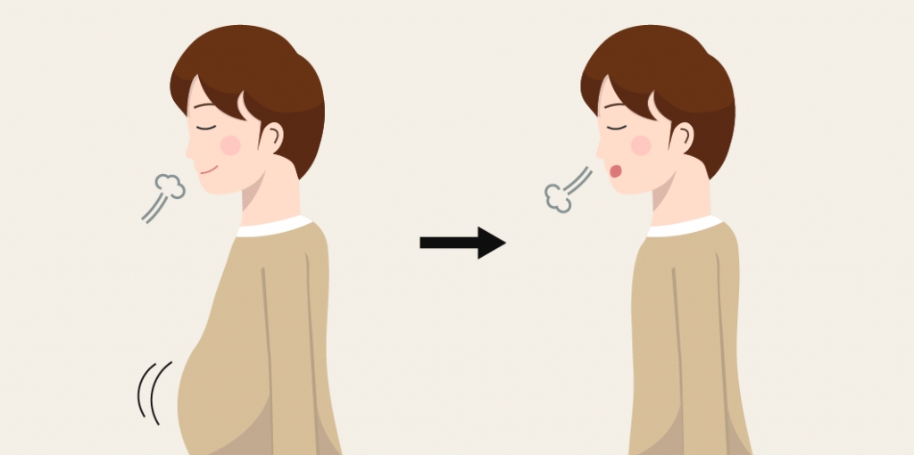 숨을 코로 들이마시고 입으로 '후'하고 소리를 내며 풍선을 불듯이 천천히 끝까지 내쉰다. 가슴에서 숨이 빠져나가는 느낌에 집중하며 느리게 내쉬면 된다.