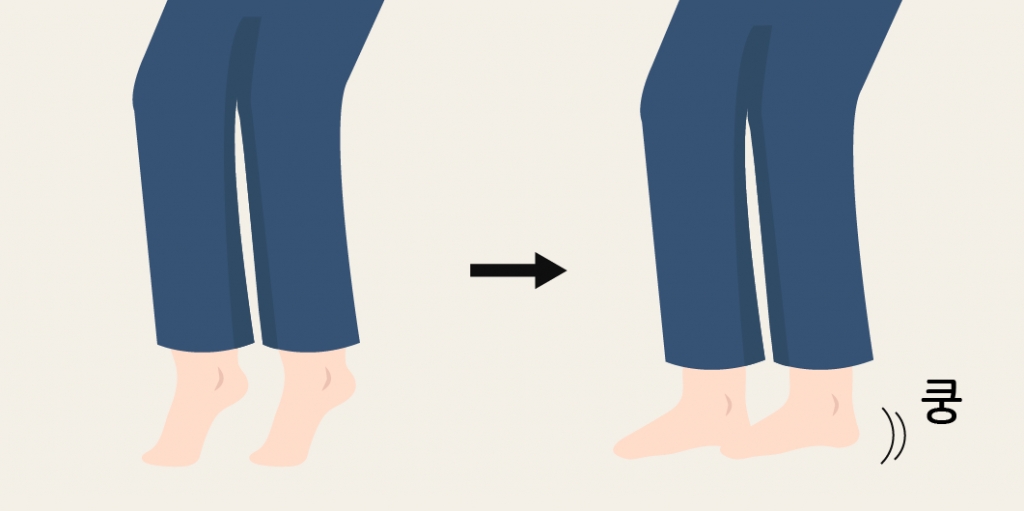 땅에 발을 딛고 있는 것을 느끼면서 '지금 여기'로 돌아온다. 발바닥을 바닥에 붙이고 발이 땅에 닿아 있는 느낌에 집중한다. 발뒤꿈치를 들었다가 '쿵' 내려놓는다. 발뒤꿈치에 지긋이 힘을 주면서 단단한 바닥을 느껴본다.