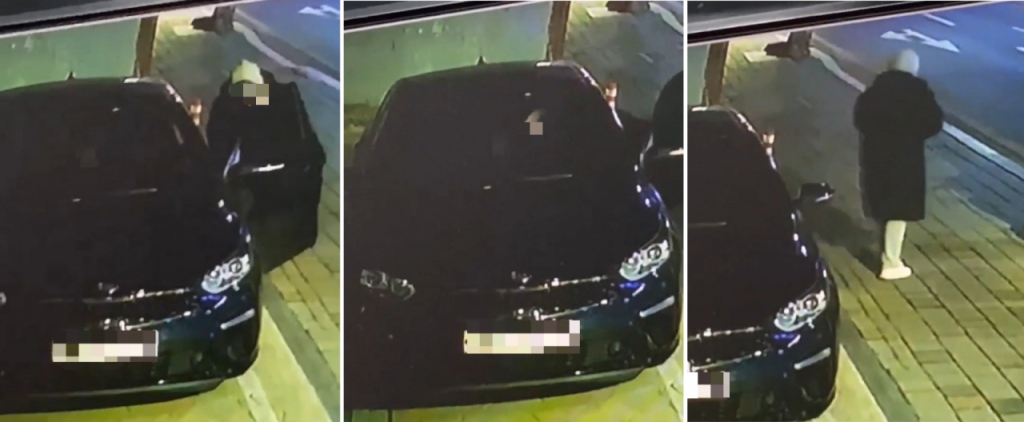 범행 당시 CCTV(폐쇄회로TV) 화면에는 A씨가 차 문을 열기 직전 장갑을 끼는 모습이 포착됐다. A씨는 후드티와 모자를 쓰고 마스크를 쓴 채로 범행했다.