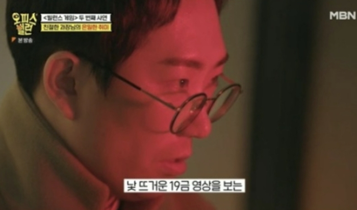 지난 20일 방송된 MBN '오피스 빌런'에서는 사무실에서 음란물을 시청하는 한 과장의 행동이 전해졌다.