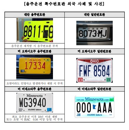'특수 번호판 법안'은 바로 음주운전자의 차량에 일반 번호판이 아닌 '특수 번호판'을 달도록 하자는 법안입니다.