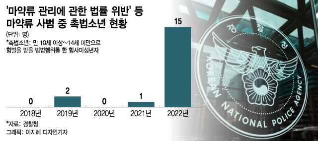 경찰이 지난해 검거한 마약사범 중에서 만 10세이상~만 14세 미만 촉법소년이 15명 포함된 것으로 밝혀졌다. 마약사범의 연령대가 점점 낮아지는 것으로 풀이된다.
