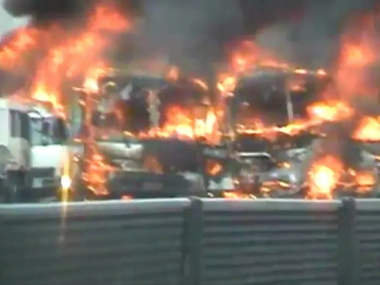 목격자 진술에 따르면 먼저 사고 차량 선두에 있던 5톤 트럭이 중앙분리대를 들이받고, 1차로와 2차로에 걸쳐 있는 상태로 정지했다.