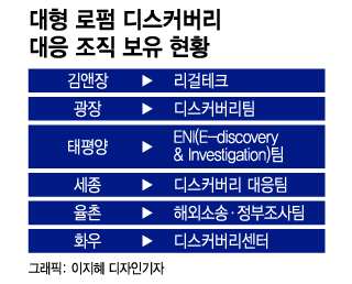 국내 대형 로펌들은 이미 제도 도입을 기정사실화하고 준비를 마친 상태다. 김앤장 법률사무소는 150명 이상으로 꾸려진 '리걸테크팀'에서 디스커버리 업무를 맡는다. 법무법인 광장·태평양·세종·율촌·화우에도 외국 변호사를 주축으로 한 대응 조직이 있다. 이들은 'LG화학-SK이노베이션 배터리 소송'처럼 국내 기업이 해외 분쟁을 벌이는 사건에서 대리를 맡는다.