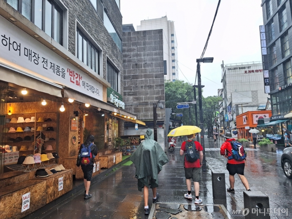 인사동 일대도 상황은 비슷하다. 쌈짓길 인근에서 전통공예 소품 매장을 운영하는 A씨는 "매출이 한 10% 오르긴 해서 나름 괜찮긴 했다"면서도 "우리 가게 상품이 몇십만원 하는 게 아니고 1만원 안팎이니까 크게 오르지는 않았다"고 했다. 이날 머니투데이가 이 매장을 찾은 오전 11시30분쯤에도 잼버리 대원 20여명이 2000원짜리 엽서, 1만원짜리 젓가락 같은 비교적 저가의 물건들을 주로 사갔다.