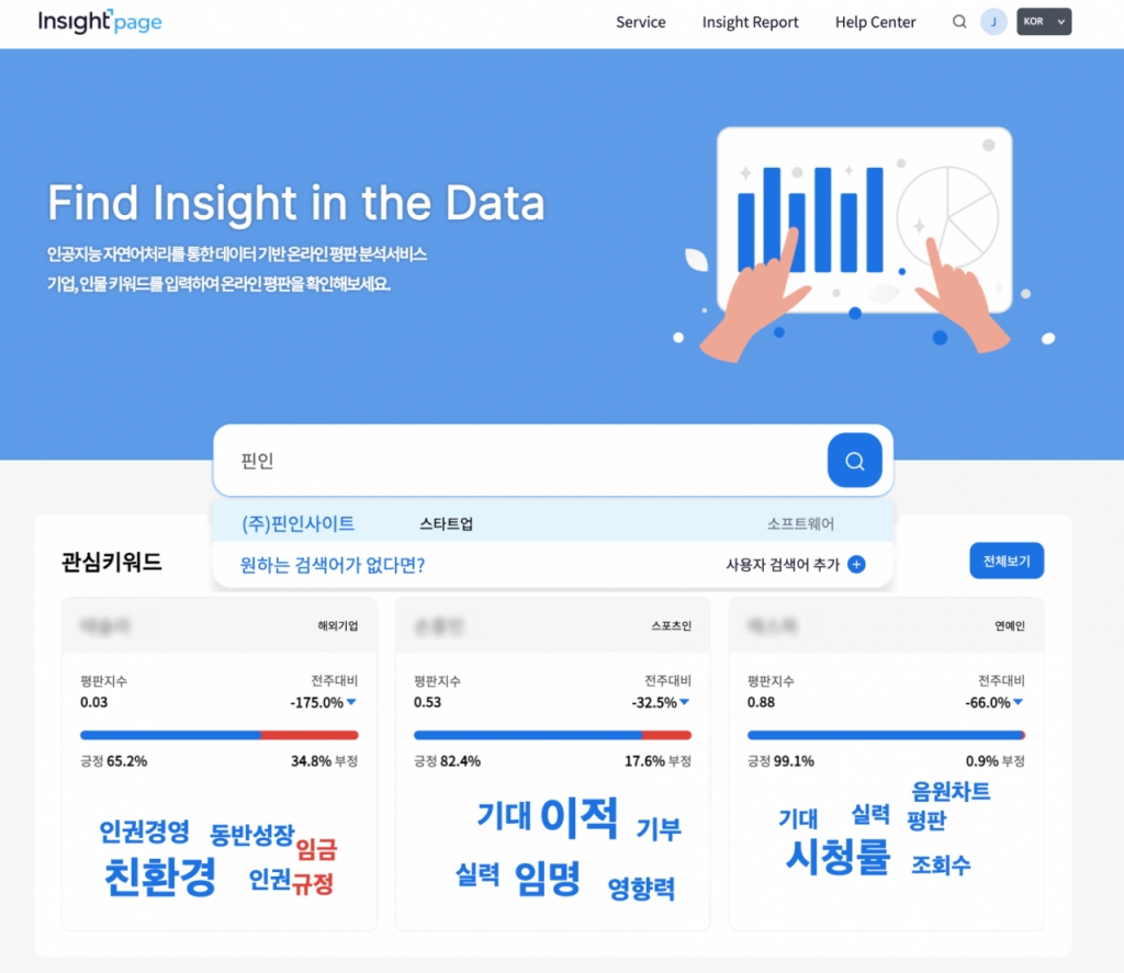 인공지능 데이터 분석을 통해 의사결정을 지원하는 기업인 핀인사이트가 기업·인물 평판 분석서비스 '인사이트페이지' 를 최근 출시해 기대를 모은다.