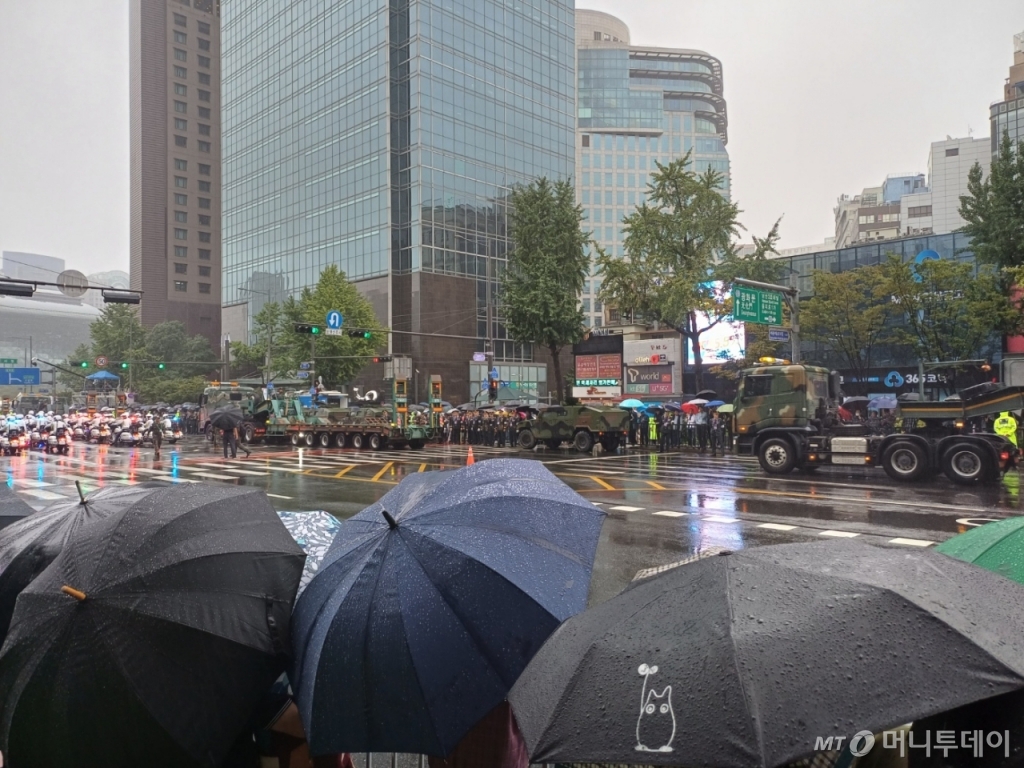 굵은 비가 쏟아졌지만 시민들은 즐거운 모습이었다. 시가행진을 위해 막아놓은 펜스 뒤에는 어린이, 외국인, 노인 등 수백명의 인파가 모여있었다. 이들은 눈 앞에 등장한 전투 차량을 보며 환호성을 지르기도 하고 손을 흔들며 인사를 건네기도 했다.
