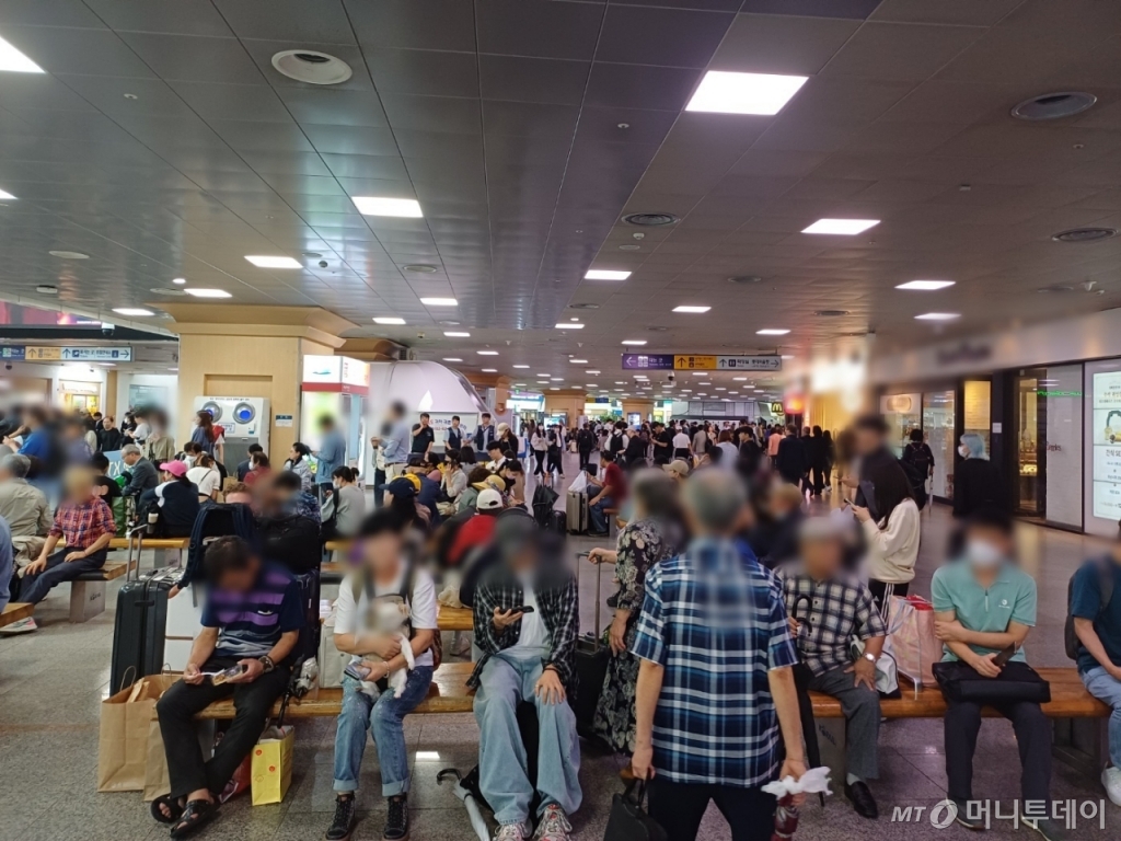 같은 시간 서울 서초구의 서울고속버스터미널에도 고향으로 떠나려는 시민들이 줄을 이었다. 식당과 카페에는 사람들이 꽉 차 들어갈 공간이 없었다. 매표소 앞에는 뒤늦게 표를 구매하려는 시민들이 10명 정도 모여있었다. 오후 버스가 매진됐다는 소식에 발걸음을 돌리는 시민들도 있었다.