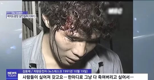 1991년 10월 19일 화창한 토요일 오후. 많은 사람으로 북적이는 여의도공원에 난데없이 나타난 차가 매우 빠른 속도로 질주하며 시민들을 덮쳤다. 사람들은 혼비백산해 비명을 질렀고, 자전거를 타던 아이들이 순식간에 쓰러졌다. 이 일로 어린이 2명이 숨지고 시민 21명 중경상을 입었다. 범인은 직장에서 해고된 일로 사회에 앙심을 품은 20대 청년 김용제였다.