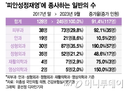 올 '피안성정재영' 분야 전속근무 245명…성형·피부과 65%