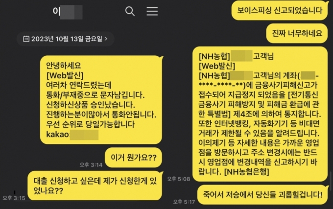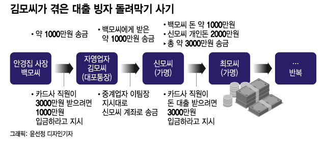 백씨 역시 카드사 대출 문자를 받고 상담 문의를 했고 김씨 계좌로 약 1000만원을 선입금해야 한다는 이야기를 들었다고 했다. 카드사 직원은 백씨에게 김씨 연락은 받아선 안된다고 주의시키기도 했다.