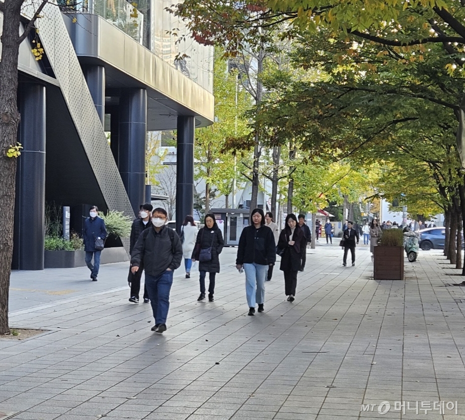 이날 오전 7시쯤 여의도공원 앞 여의도 환승센터에는 버스를 기다리며 추위를 이겨보려는 20대 여성이 발을 동동 구르고 있었다. 일부는 걸음을 재촉하기도, 일부는 주머니나 옷 소매에 손을 넣기도 했다.