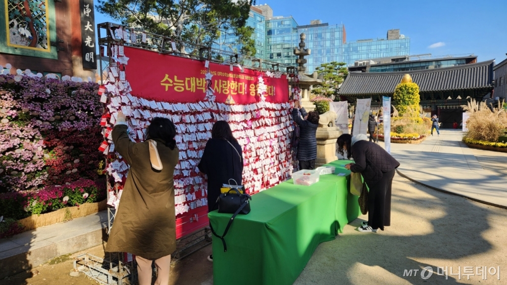 조계사 관계자는 "입시 기간이 되면 120개에 달하는 기도용 의자에 빈자리가 없다"며 "학부모들이 촛대를 하루에 2~3개씩 사서 기도를 한다. 멀리서 봐도 간절함이 느껴진다"고 밝혔다.