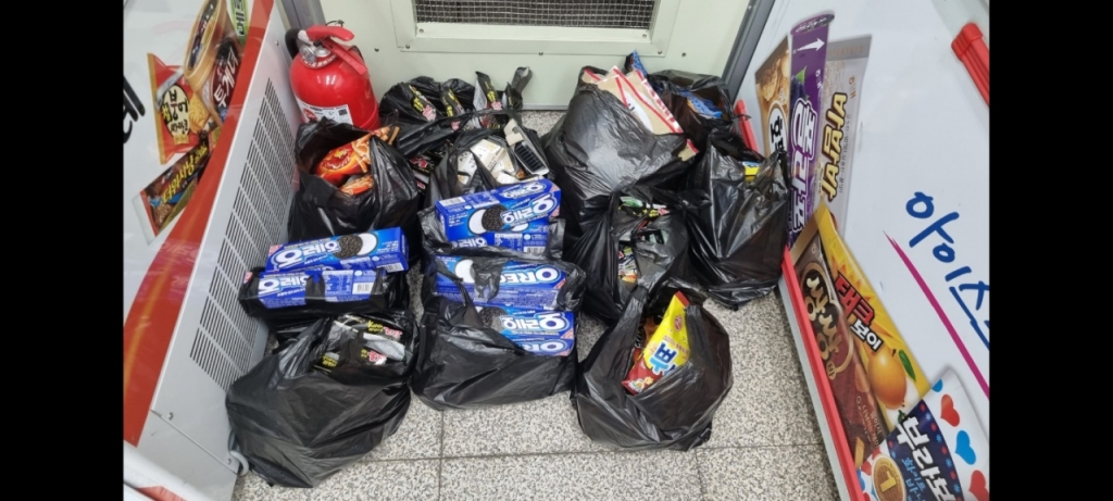 매장 CCTV(폐쇄회로TV)에는 A씨가 과자 등을 봉투 12개에 나눠 챙겨 가려는 모습이 찍혔다. A씨는 CCTV를 보고 있던 60대 점주 B씨의 112 신고로 점포 인근에서 붙잡힌 것으로 파악됐다. B씨는 "무인점포는 모든 상황을 살펴볼 수 없어 도둑질을 당해도 모르는 경우가 있다"며 "A씨가 12봉지를 다 가져가려고 했는데 그게 어떻게 가능하냐"고 말했다.