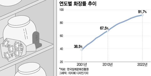 화장은 고인과의 작별을 위한 관문으로 자리 잡았다. 올해 9월 기준 화장률은 92.5%다. 화장률이 올라가면서 화장장 문턱도 높아졌다. 화장시설은 넘치는 수요를 따라가지 못하고 있다. 그만큼 화장시설 예약이 어려워졌다. 화장시설을 예약하지 못해 3일장(葬)을 포기하는 사례도 속출한다. 서울의 경우 지난달 3일차 화장률이 25.5%까지 떨어졌다.