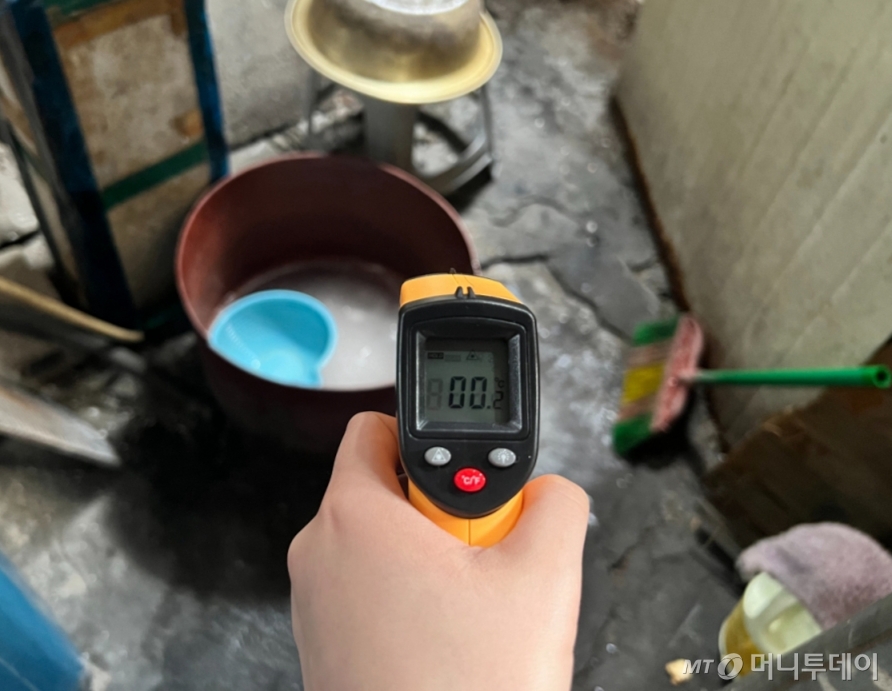 배씨 집은 연탄을 때 훈훈한 공기가 방안을 채웠지만 바닥과 벽에서 나오는 바람을 막을 수는 없었다. 세탁기와 김치냉장고 등 생활 잡화가 늘어져 있는 공간의 바닥 온도를 재보니 3도였다. 0도인 문밖과 다를 바 없었다. 말을 할 때는 입김이 새어 나왔다.
