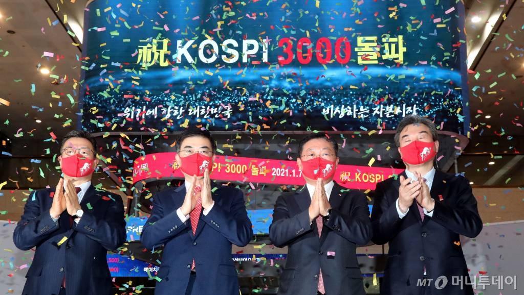 2021년 1월 7일. 서울 여의도 한국거래소 1층 전광판에 낯선 숫자가 나타났다. 한국 주식시장이 문을 연 이래 최초로 코스피가 종가 기준 3000선을 넘어선 것.