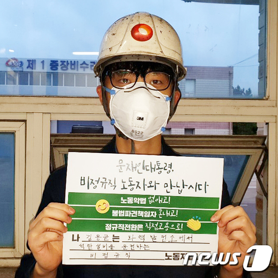 용균씨는 2018년 9월17일 한국서부발전 태안화력 현장 설비 하청업체인 한국발전기술에 계약직으로 입사했다. 1년 근무하면 정규직 전환을 해주겠다는 조건이었다. 용균씨의 업무는 석탄을 운반하는 컨베이어 벨트가 잘 돌아가는지 순찰하며 확인하고, 떨어진 석탄을 빼내는 일이었다. 사망 전날(10일) 저녁 6시30분부터 11일 오전 7시까지 용균씨는 컨베이어 벨트나 소방 이상 유무를 점검하고 발전소 내부 3~4㎞를 혼자 순찰하는 업무를 맡았다.