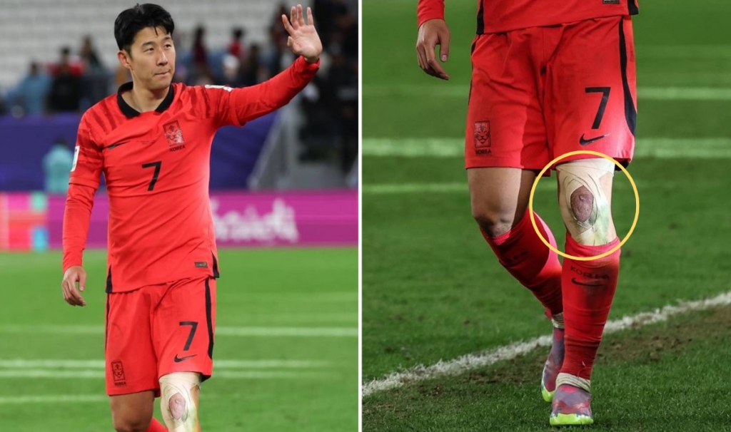 손흥민의 무릎은 상대 선수에게 발로 차이거나 밀려 넘어진 탓에 상처투성이였다. 대회 내내 부상이 이어졌는지 통증을 완화하고자 많은 테이핑으로 무릎 주변을 꽁꽁 싸맨 모습이었다.