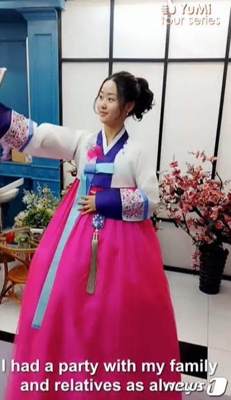 유미는 영상에서 가족들과 새해 음식을 만들었다며 킹크랩 등이 올라간 밥상을 소개했다. 또 유미는 신년을 맞아 한복을 차려입은 모습도 영상을 통해 공개했다.
